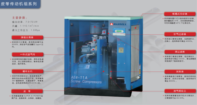 汉钟牌AE6系列电动皮带式静音节能福建厦门螺杆式空压机