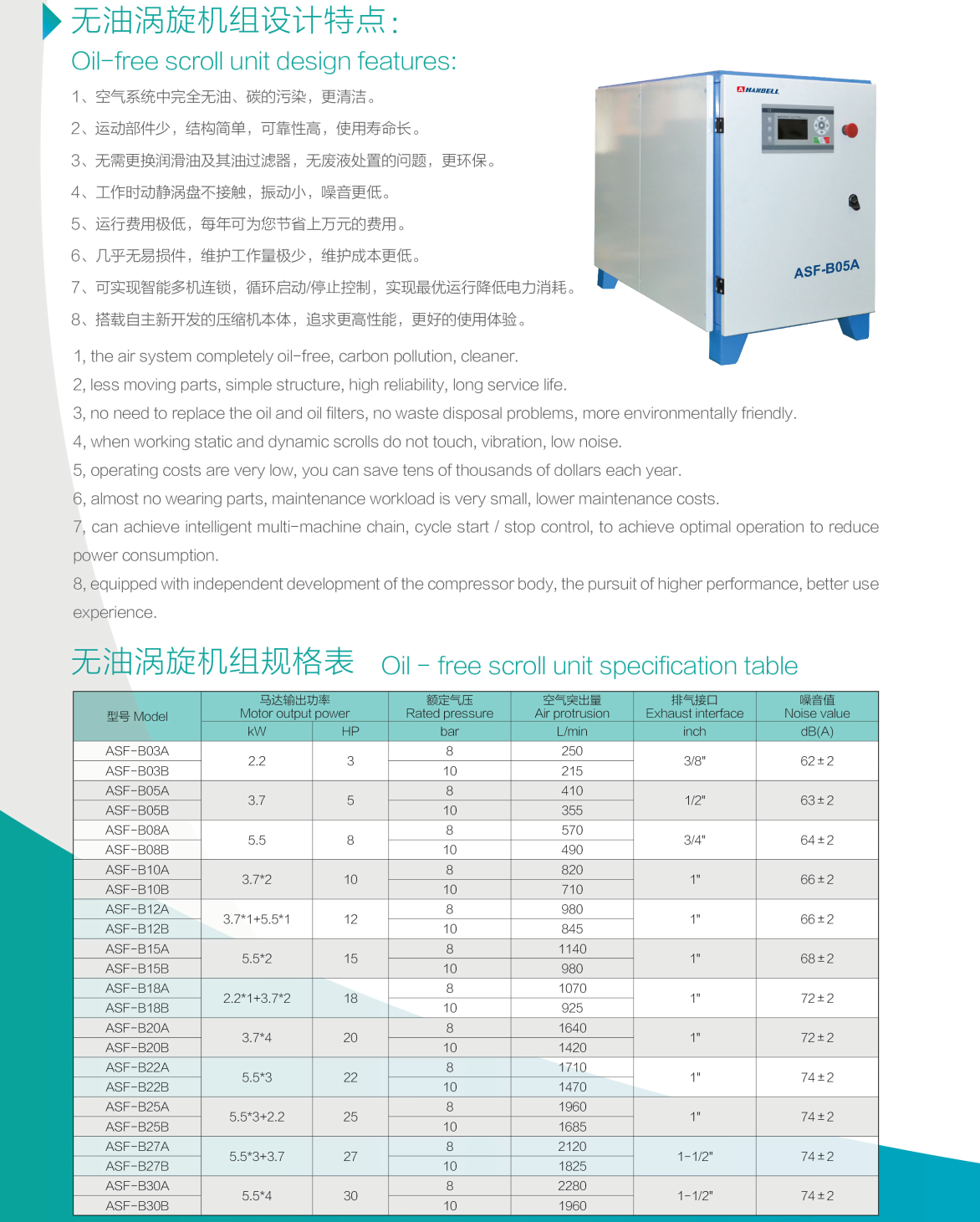 汉钟ASF无油涡旋式空气压缩机