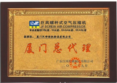 2013年9月德国巨风、欧得风授权厦门汉钟精机有限公司----总代理经销权-品牌代理