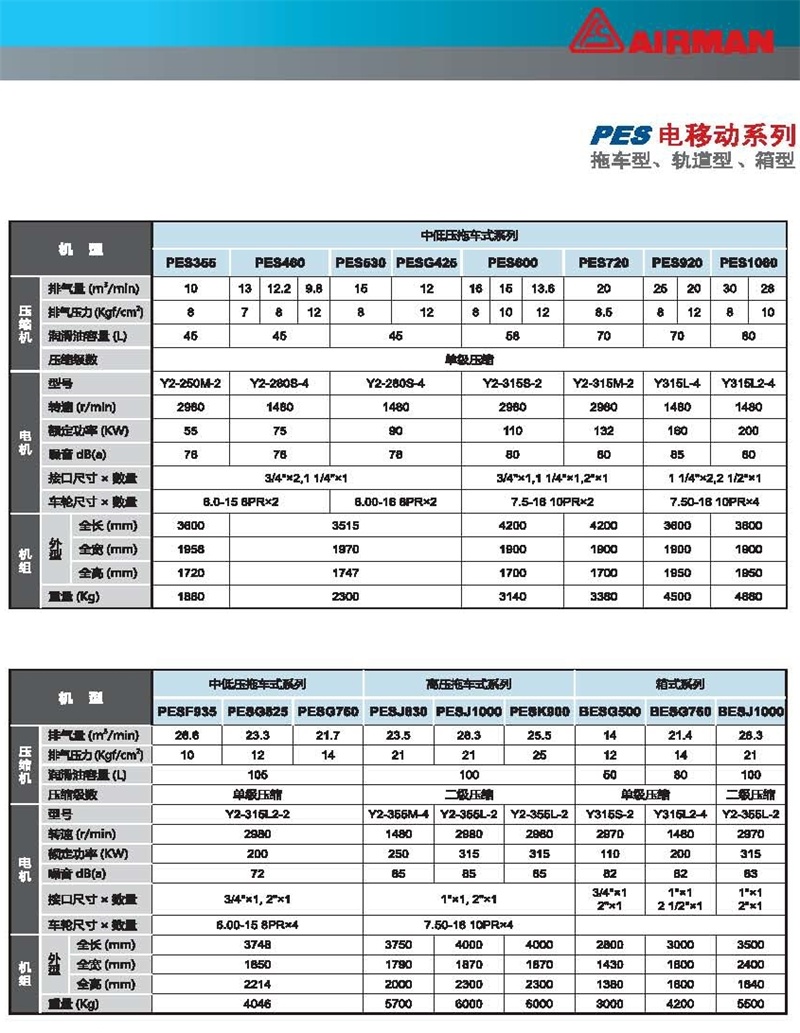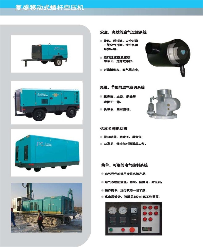 复盛埃尔曼牌PES系列电移动式螺杆空压机