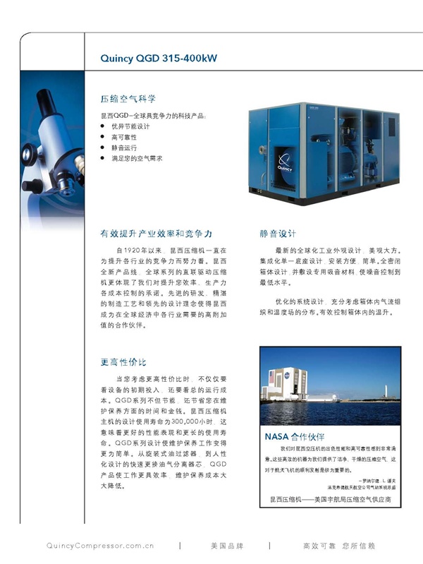 昆西QGD/QGV系列螺杆式空气压缩机110-200kW