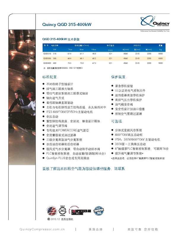 昆西QGD系列螺杆式空气压缩机315-400kW