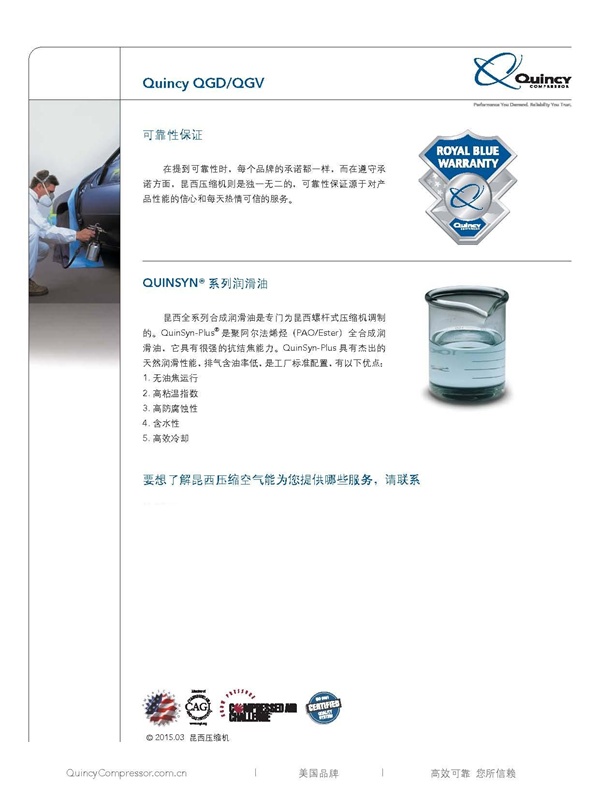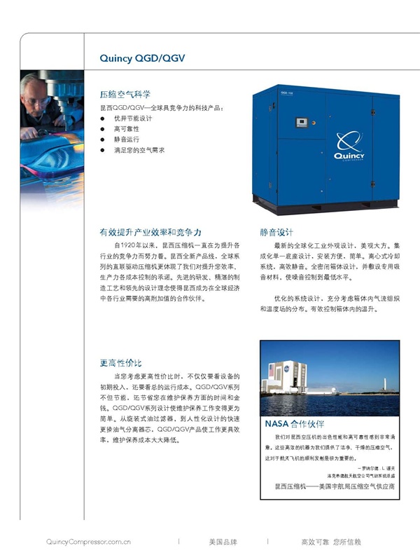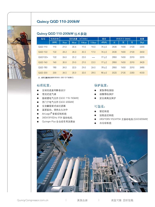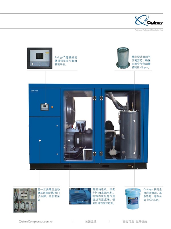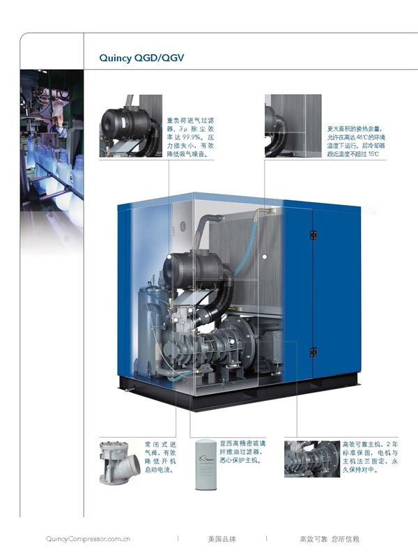 昆西QGD/QGV系列螺杆式空气压缩机110-200kW