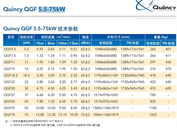 昆西QGF系列螺杆式空气压缩机5.5-75kW